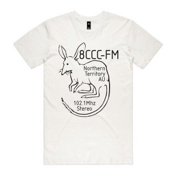 8CCC is celebrating 45 years of full time broadcasting in 2026. This special edition tee is based off one of the stations first emblems from the early 80’s – the Bilby – who with it’s 2 large ears could appreciate Central Australia’s first stereo radio station – 102.1FM